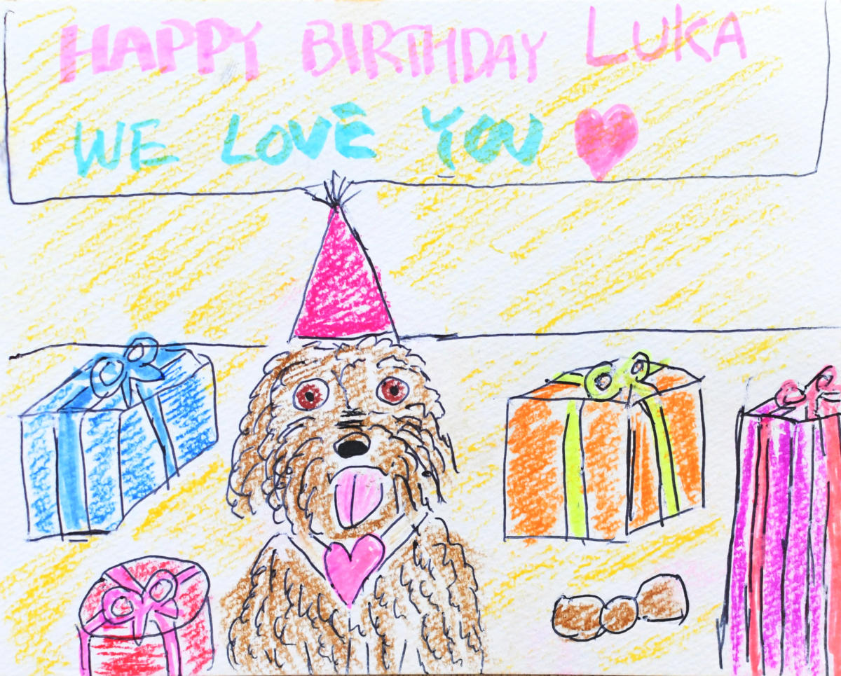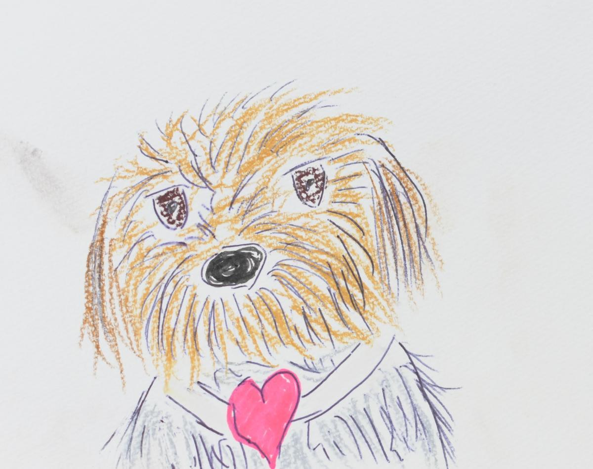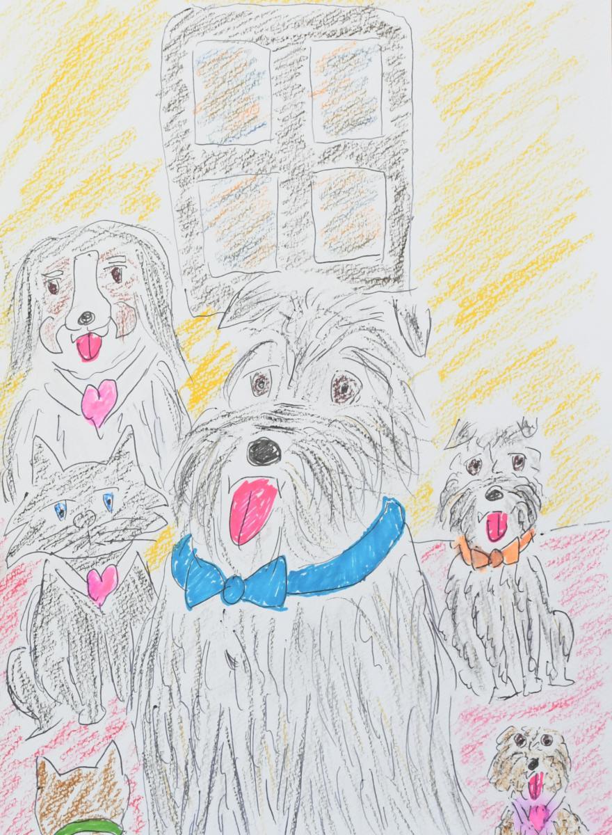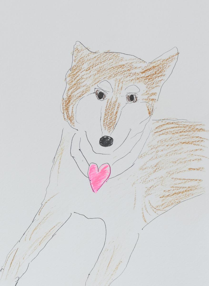 私の作品の大半は、愛犬「ギルビー」を中心に初代愛犬「ムク」とオリジナルキャラクターのネコの「YUI」を描いています。